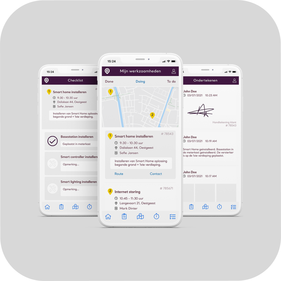 Is het werk afgerond? Laat je klant direct op locatie digitaal tekenen. De handtekening wordt automatisch verwerkt in de werkbon of het opleverrapport en kan direct naar de klant worden gestuurd. Snel, eenvoudig en zonder papierwerk.